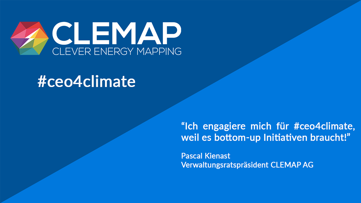 “Ich engagiere mich für #ceo4climate, weil es bottom-up Initiativen braucht!” hält Verwaltungsratspräsident und COO Pascal Kienast fest. Mit bottom-up Initiativen sind Bestrebungen gemeint, die nicht von der obersten politischen Ebene aus gestartet werden, sondern vom Volk oder von Unternehmen. Die Teilnahme an #ceo4climate wurde darüber hinaus aufgrund der gemeinsamen Ideologie lanciert. Für CLEMAP spielt der Schutz der Umwelt seit seiner Gründung eine wichtige Rolle, weshalb das Unternehmen auch seit 2019 im Förderprogramm der Klimastiftung Schweiz ist.